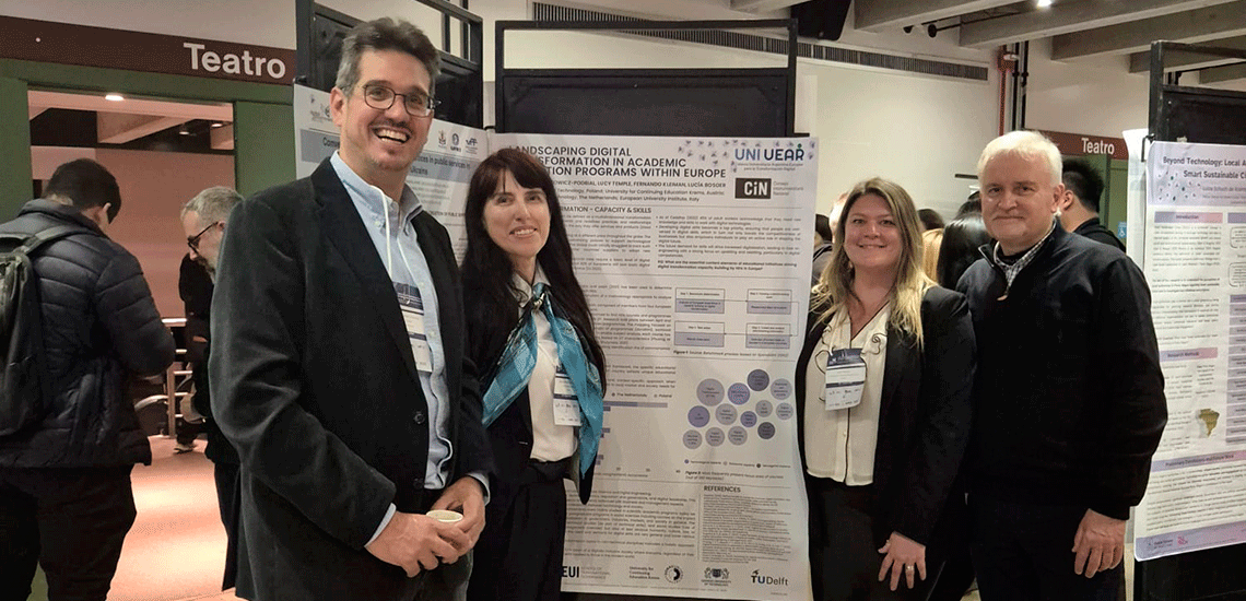 Lucy Temple (University for Continuing Education, Krems, Austria), Grazyna Musiatowicz-Podbial y Tomasz Janowski (Gdansk University of Technology, Polonia), y Fernando Kleiman (Delft University of Technology, Países Bajos) tienen la autoría del póster presentado el 11 de junio. El póster describe el trabajo de investigación para evaluar la oferta académica en término de cursos de grado y posgrado y programas educativos dedicados a crear capacidades humanas para la transformación digital en Austria, Italia, Países Bajos, y Polonia.